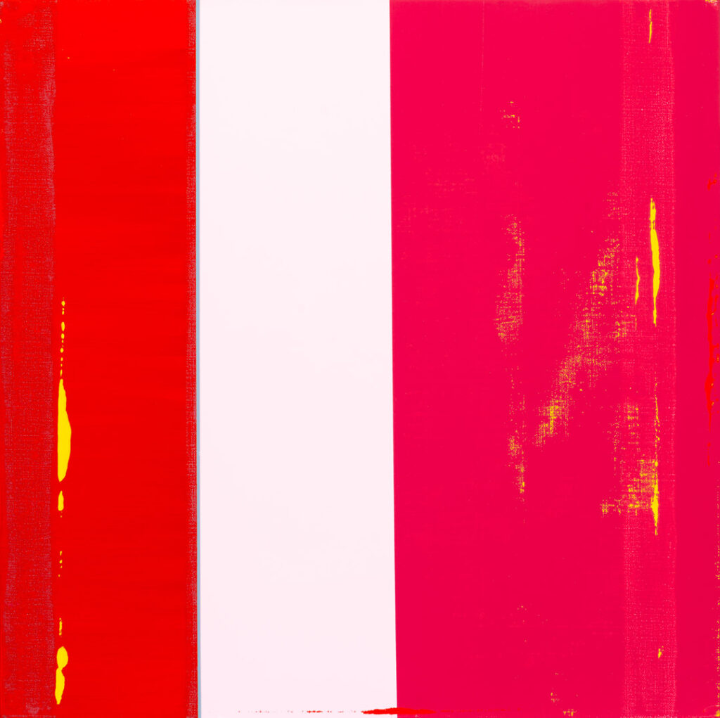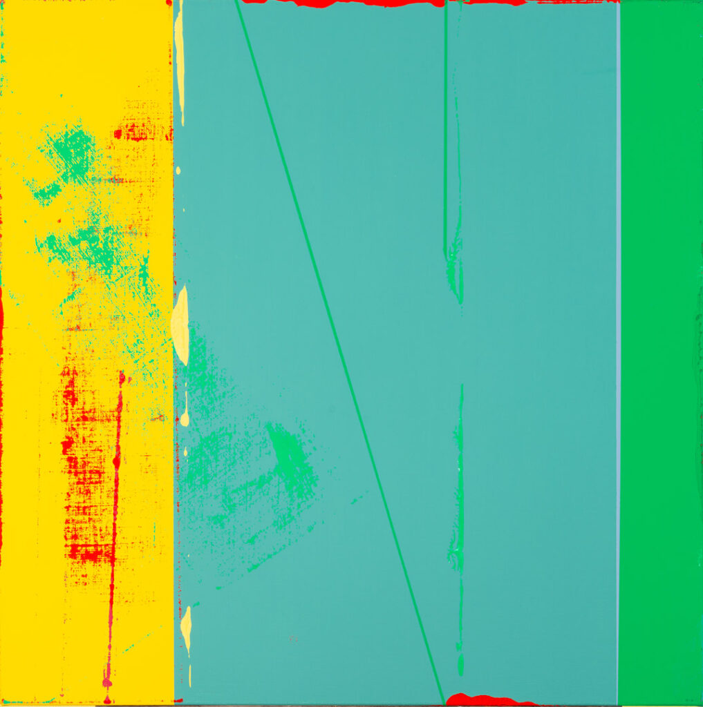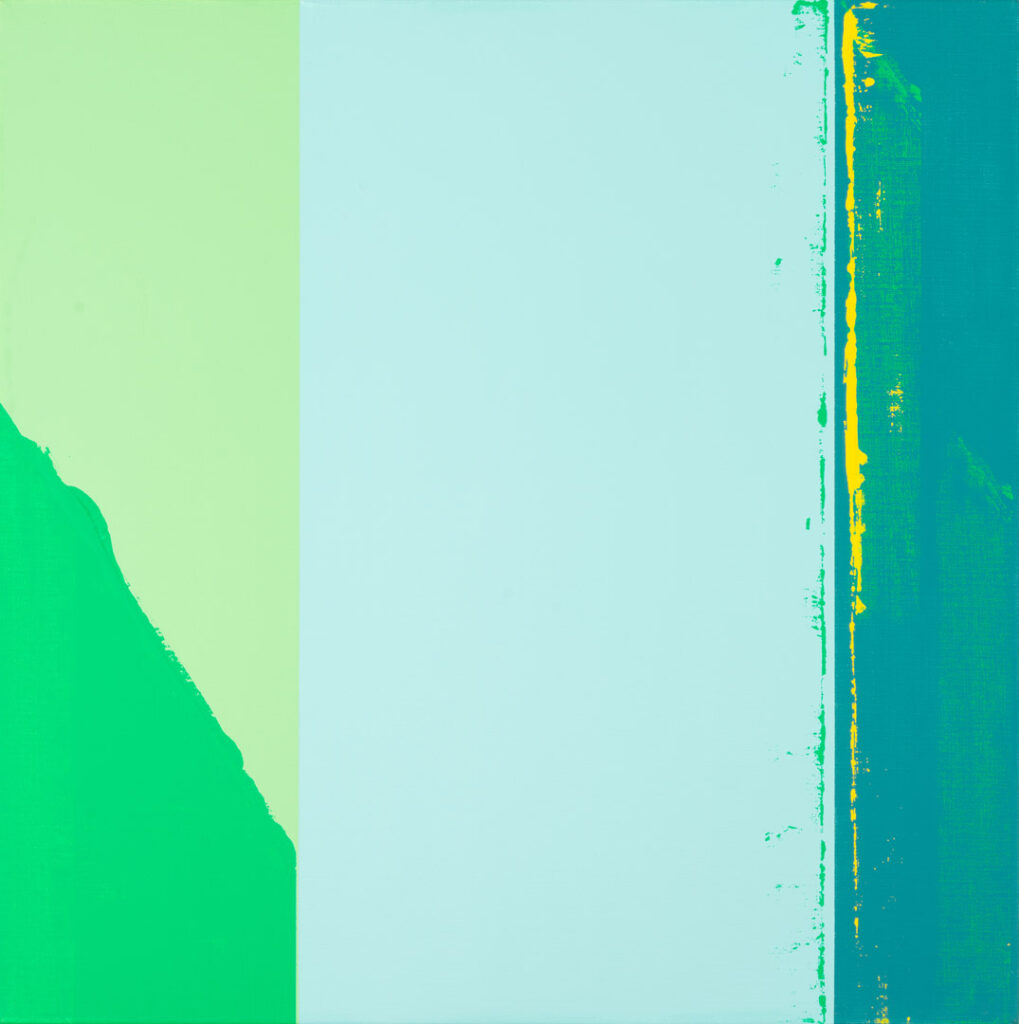 These paintings trace attention. A repose of flatness, followed by interruptions of marks. The calm decision of a hardened edge, the speed of a blur.
