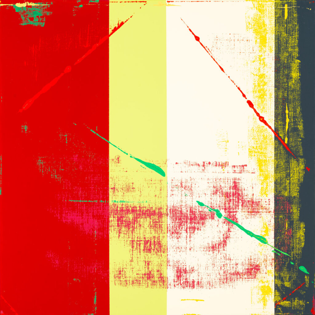 These paintings recall the interference of touch. Signal to echo, bridging surface and ground. Colours moving in and out of reach.
